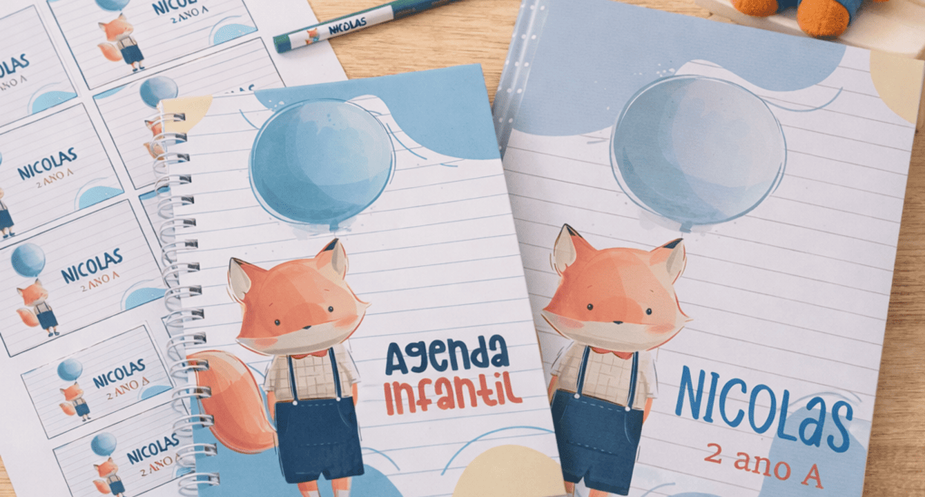 Transforme a volta às aulas em um momento ainda mais especial com Caderno Brochura Agenda Infantil e Etiquetas Personalizadas