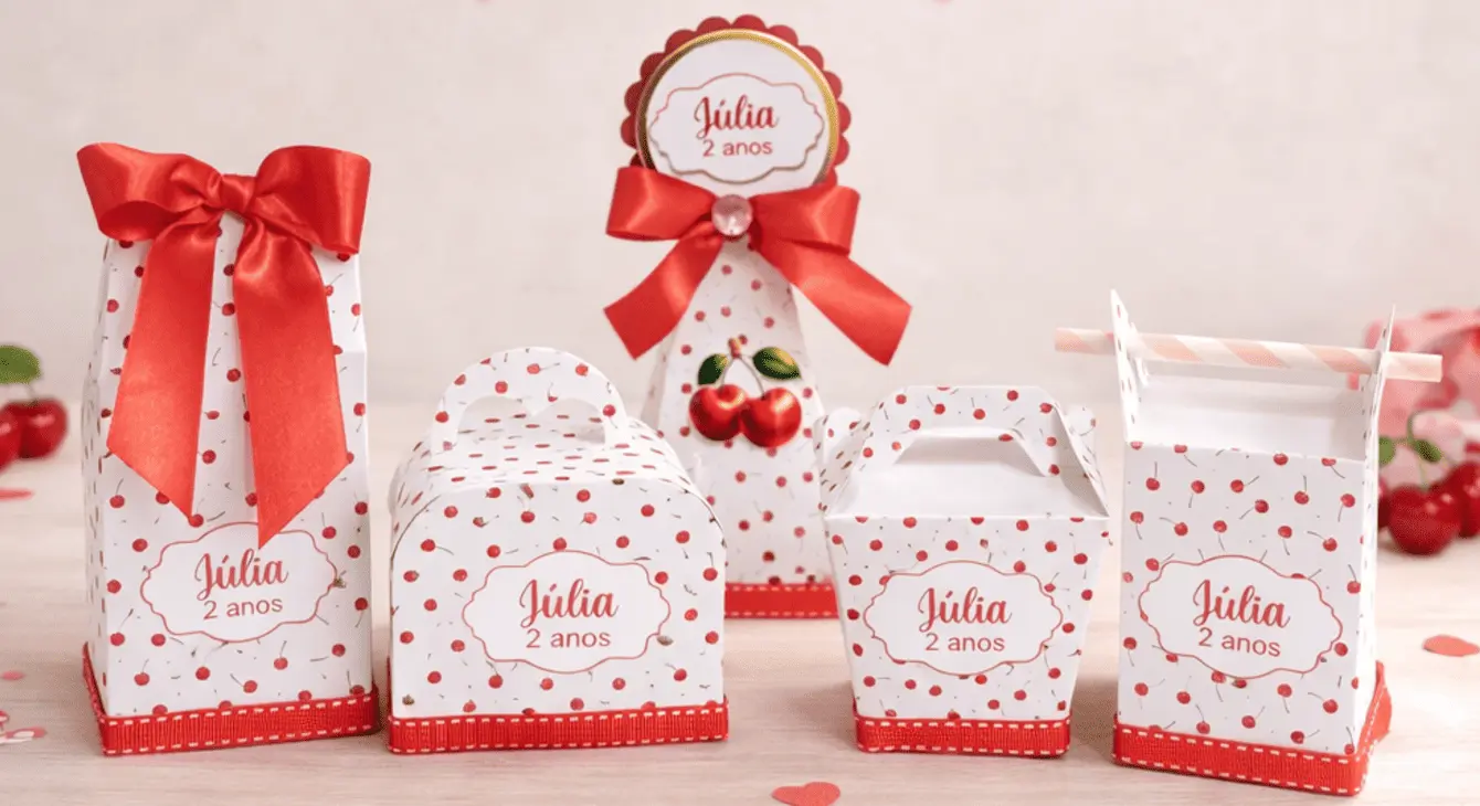 “Cerejinhas, laços e memórias: detalhes que fazem a festa brilhar!”