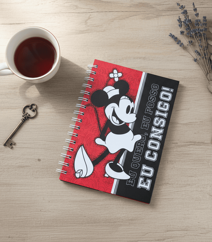 Com o charme nostálgico da Minnie clássica, é perfeito para quem ama papelaria afetiva e deseja transformar o simples ato de escrever em um momento cheio de inspiração