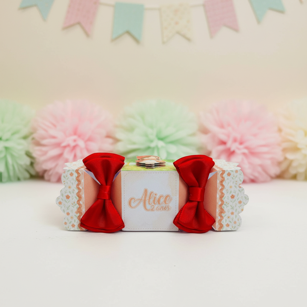 • O kit será enviado já pré-montado, caixinhas coladas com laços e apliques aplicados.