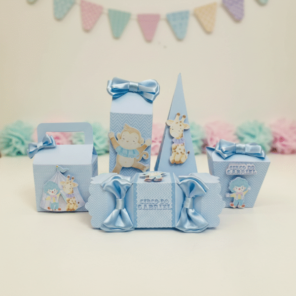 • O kit será enviado já pré-montado, caixinhas coladas com laços e apliques aplicados.